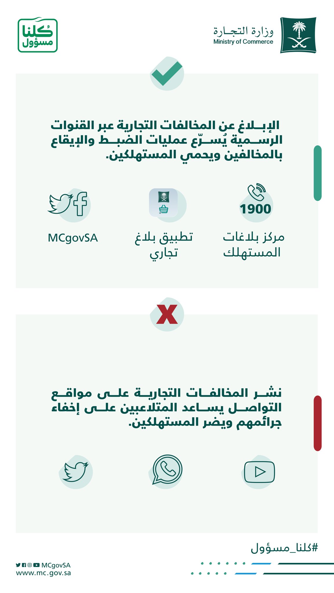 وزارة التجارة On Twitter إبلاغك عن المخالفات التجارية عبر القنوات الرسمية يسر ع ضبطها بل غنا على 1900 تطبيق بلاغ تجاري قنوات التواصل الاجتماعي Https T Co Yo7atprbs9
