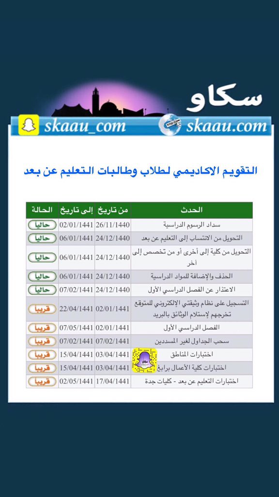 التقويم الاكاديمي جامعة الملك عبدالعزيز