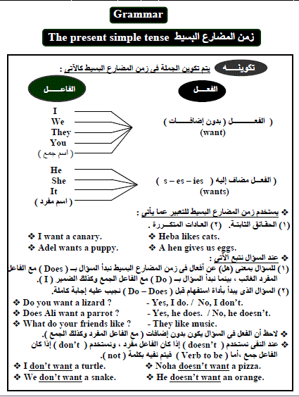 قواعد اللغة الانجليزية للصف الرابع الابتدائي ترم طالب