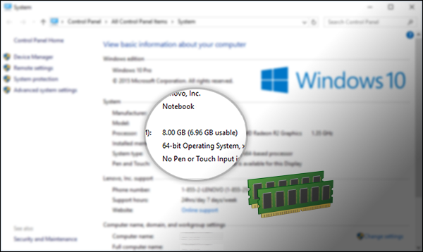 كيفية معرفة حجم الرامات ويندوز 10