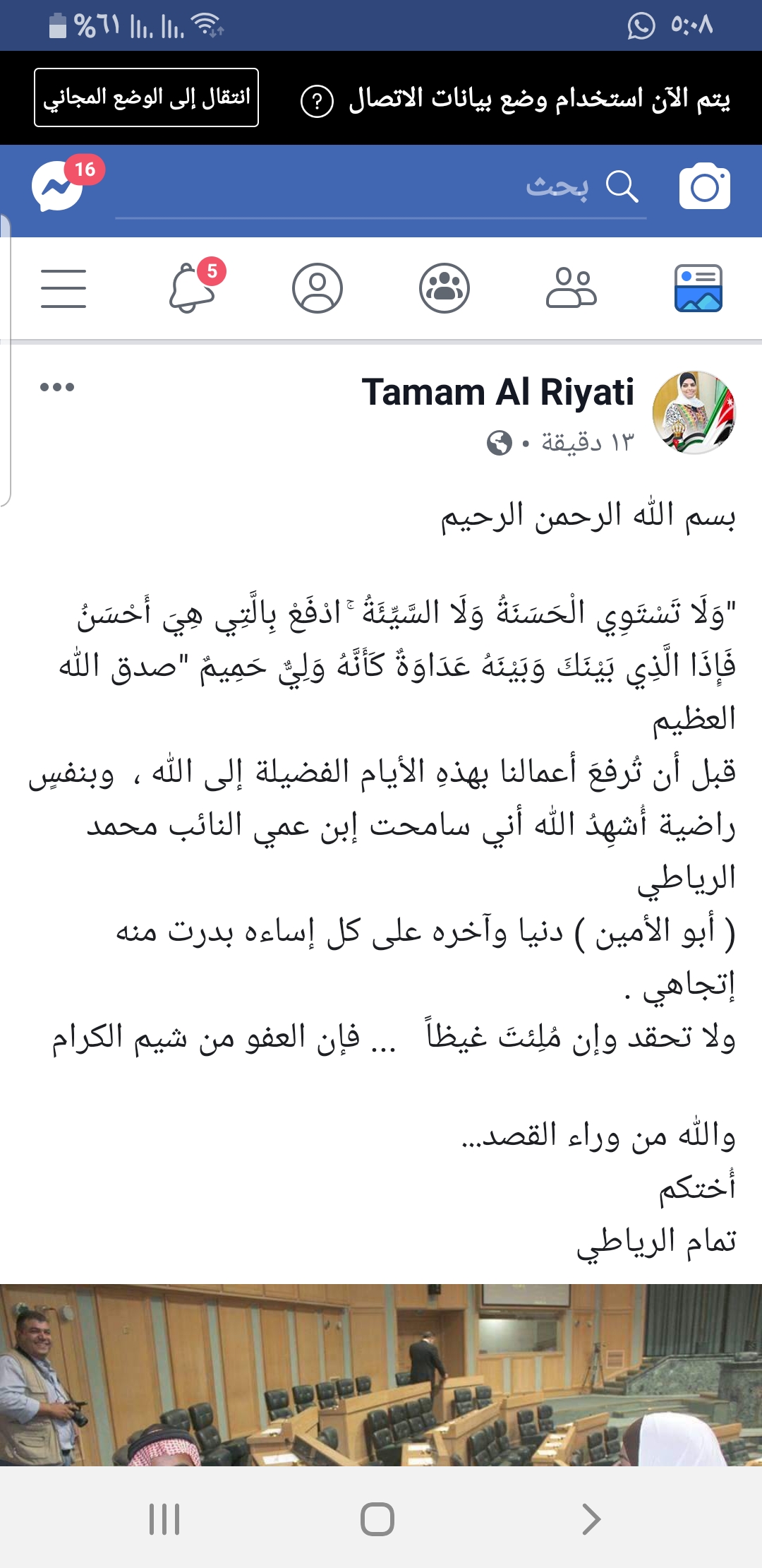 النائب تمام الرياطي سامحت ابو الامين دنيا واخرة برلمان وكالة عمانيات الإخبارية
