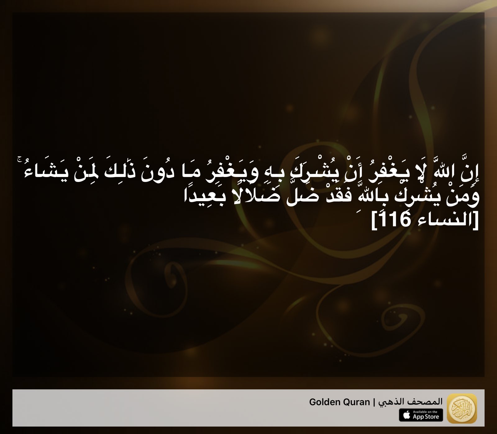 Fahad 9 On Twitter إن اللـه لا يغفر أن يشر ك به ويغفر ما دون ذلك لمن يشاء ومن يشر ك باللـه فقد ضل ضلالا بعيدا ١١٦ النساء Quran